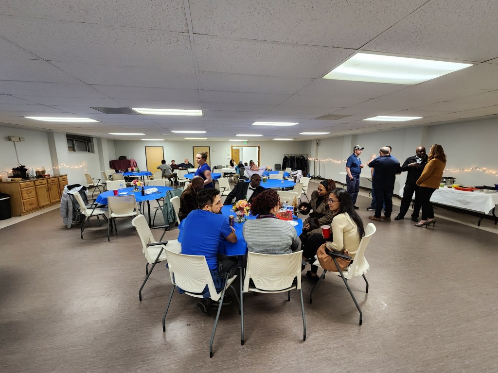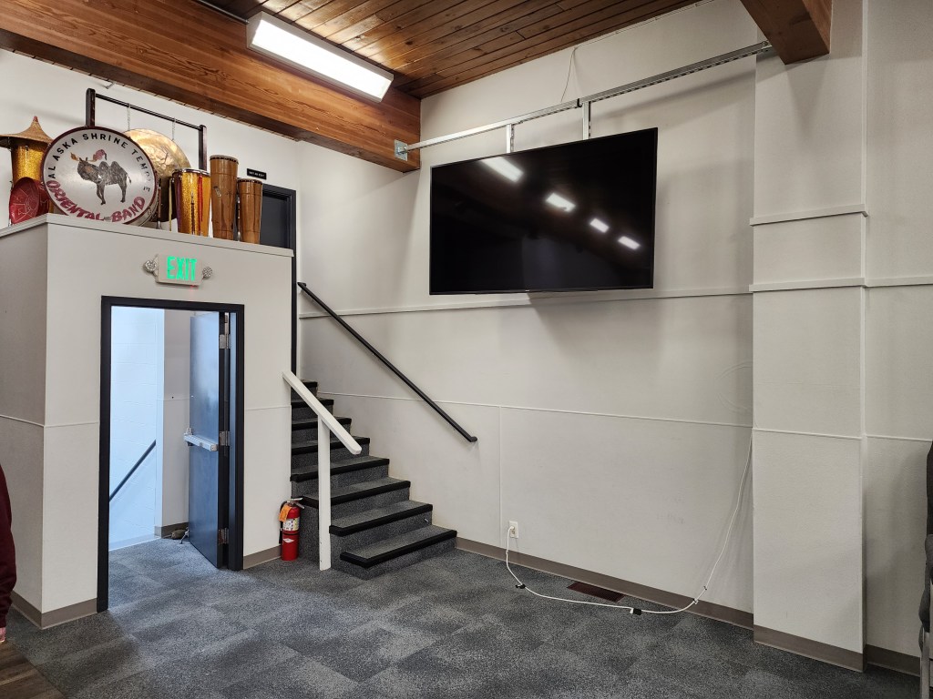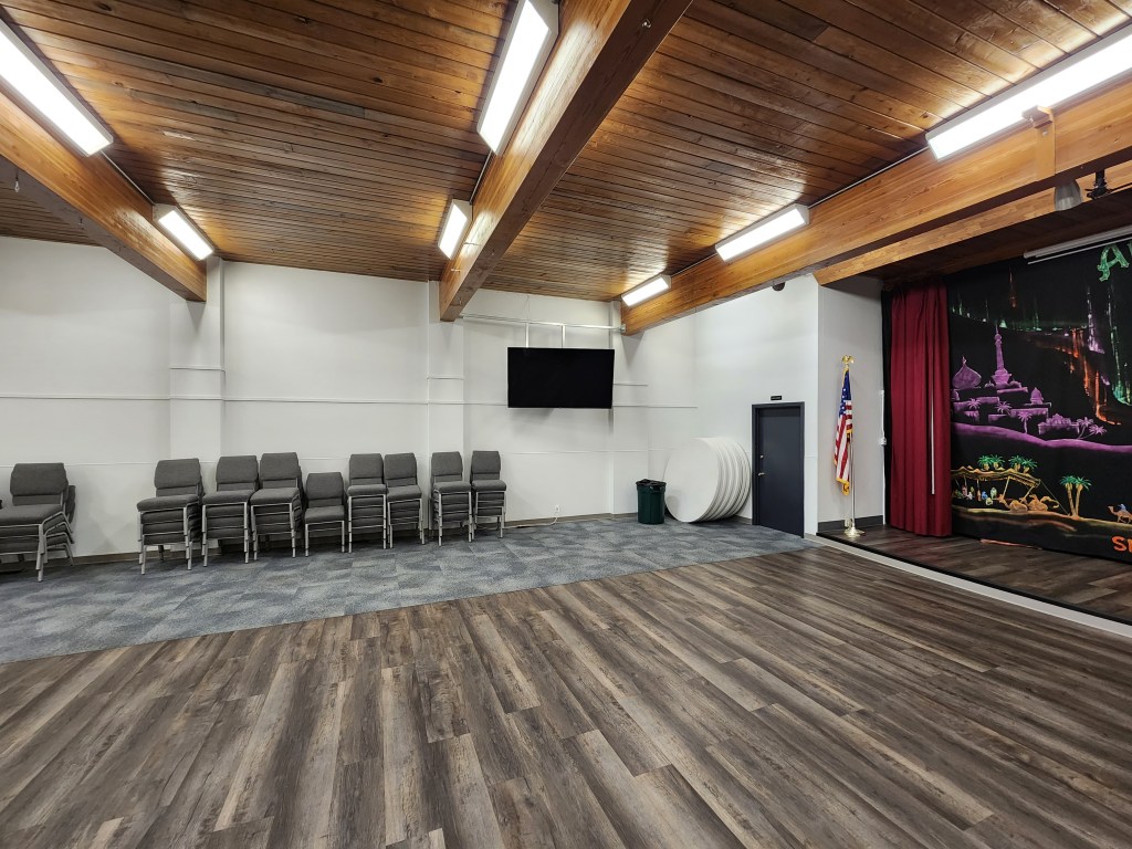 Our downstairs can accommodate 160 occupants and is equipped with a kitchen for catered events, ice machine, and a PA system.
